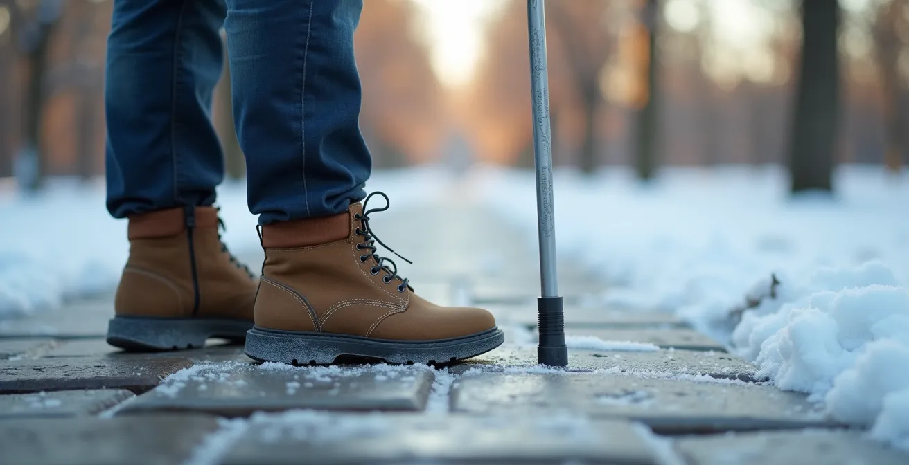 For seniors who rely on a walking cane, the fear of a slip on an icy sidewalk or a wet tile floor is constant and valid. This single moment of instability can lead to serious injury, eroding confidence and limiting independence. The common advice is often to simply « be careful » or buy a generic accessory. From an engineering perspective, this approach is flawed because it fails to treat the user, the cane, and the environment as an integrated system. A fall is a system failure, and preventing it requires a systematic approach to enhancing stability at every point of contact.